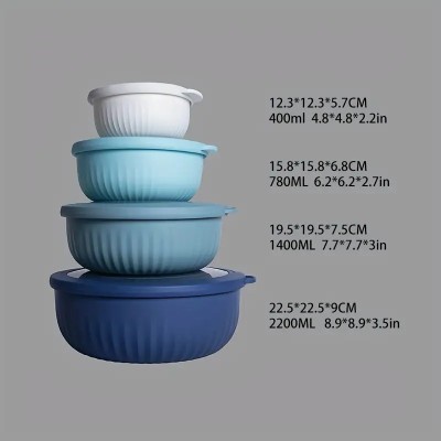 [4 bowls+4 lids] TCBM wide mouthed mixing bowl, with lid, multiple sizes, food grade salad dressing container, snack bowl